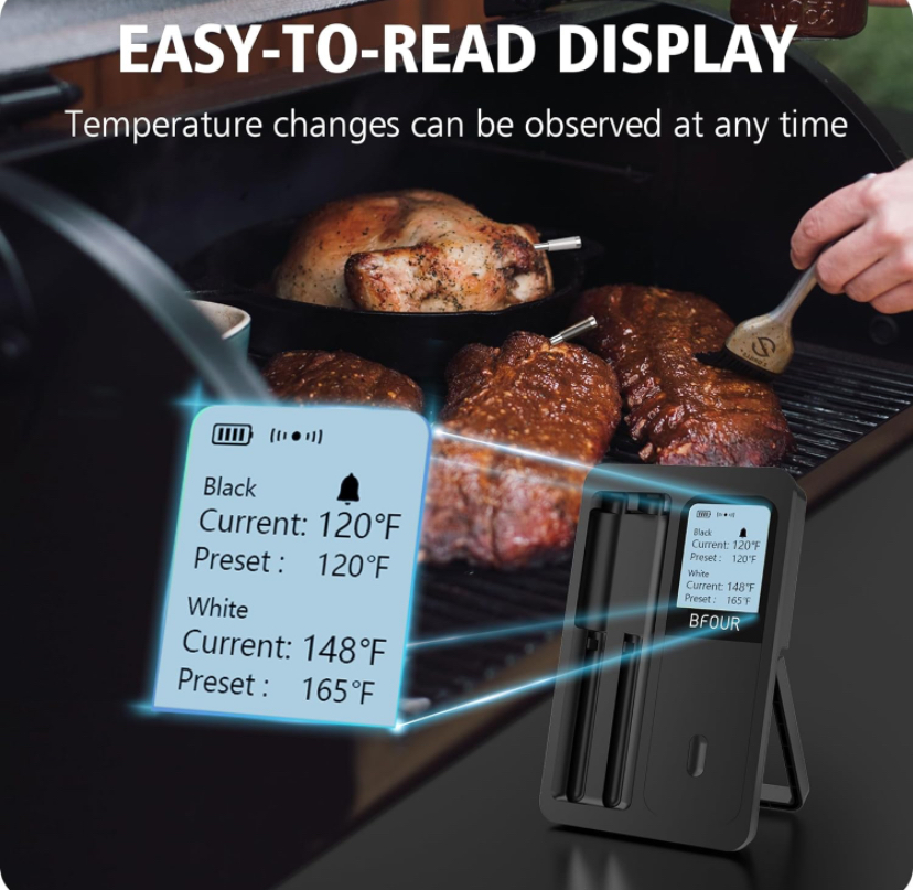BFOUR/Jinutus Bluetooth Meat Thermometer Wireless: Black