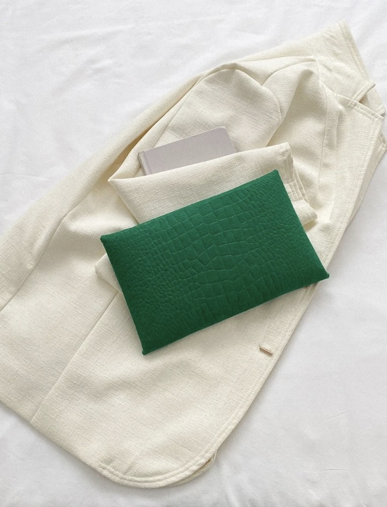 Crocodile Embossed Contrast Binding Envelope Bag - Green