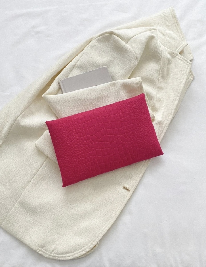 Crocodile Embossed Contrast Binding Envelope Bag - Hot Pink