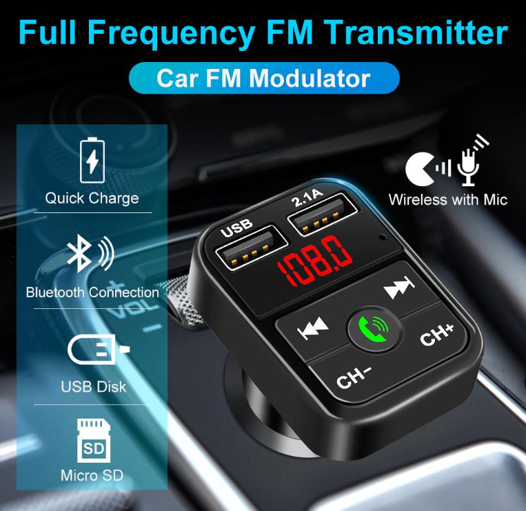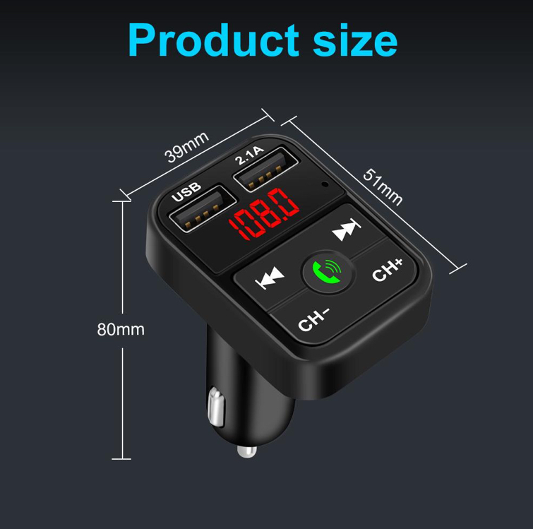 FM Transmitter Bluetooth Handsfree MP3 Audio Music Player Dual USB Radio Modulator Car Kit 2.1A Charger - Black