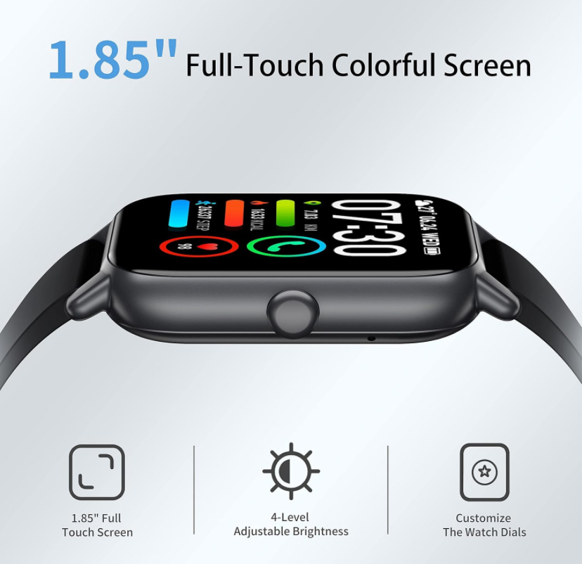 IP68 Fashion Smart Watch For Men 1.85 Inch Full Touch Screen Bluetooth Calls Waterproof Sports Fitness: black